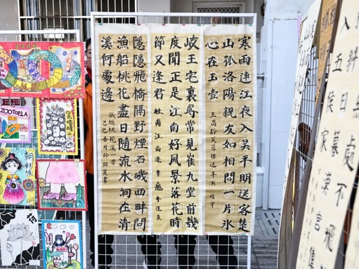 鮑溝鎮(zhèn)中心小學(xué)采取“一文一武”策略,即體育運動和書香講壇,來撬動學(xué)校的內(nèi)涵發(fā)展。現(xiàn)場設(shè)置了勞動教育和跨學(xué)科學(xué)習(xí)的“一米菜園”實踐基地,體育足球特色項目,傳統(tǒng)文化花燈節(jié),美育社團成果,書香講壇及讀寫課程暨“五好工程”等展區(qū)。“一米菜園”展區(qū)一塊塊規(guī)劃整齊的小菜園里生機盎然,各類蔬菜長勢喜人;足球場上,學(xué)生們正在進(jìn)行激烈的訓(xùn)練,他們在陽光下奔跑、傳球、射門,展現(xiàn)出青春的活力與激情;快板社團的學(xué)生們手持快板,有節(jié)奏地說唱著,內(nèi)容豐富多樣,既有對傳統(tǒng)文化的傳承,又有對新時代的贊美。現(xiàn)場還陳列了琳瑯滿目的花燈、書法、繪畫、剪紙等作品,這些作品不僅是孩子們藝術(shù)才華的生動展現(xiàn),更凝聚著他們的心血與創(chuàng)意,成為了現(xiàn)場一道亮麗而獨特的風(fēng)景線。