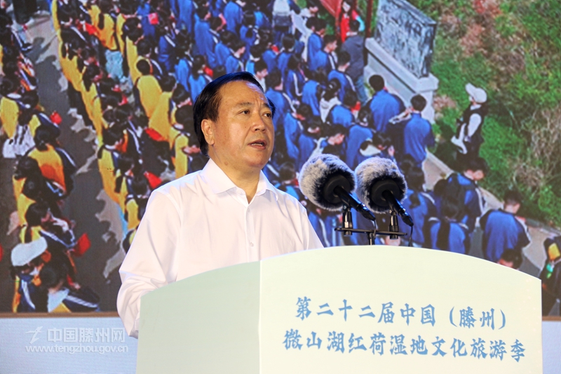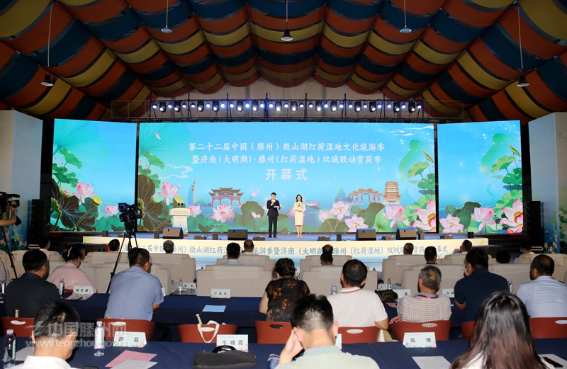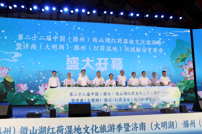 墨子家鄉文韻濃,善城滕州荷正紅。7月26日,備受社會關注的第二十二屆中國(滕州)微山湖紅荷濕地文化旅游季暨濟南(大明湖)·滕州(紅荷濕地)雙城聯動賞荷季開幕式舉行。山東省委原副秘書長、省精品旅游促進會會長杜文彬,山東廣電傳媒集團黨委副書記、總經理張先,以及山東省發展和改革委員會、山東省商務廳、山東省總工會、山東省文化和旅游廳相關負責人等應邀出席開幕式。棗莊、滕州兩級市領導王廣部、劉吉忠、劉曉璐、朱晏辰、薛登峰出席開幕式。