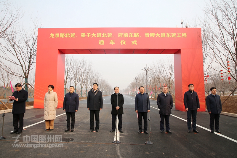 2月8日,備受全市人民關注的龍泉路北延、墨子大道北延、青啤大道東延、府前東路東拓工程四條城區重點道路通車儀式舉行。棗莊市委常委、滕州市委書記王廣部出席儀式并講話,市委副書記、市長周剛主持儀式,市領導朱晏辰、薛登峰、程亮、康鳳霞、顏丙磊、趙煒出席儀式。山東高速工程建設集團董事長姜福強應邀參加活動。