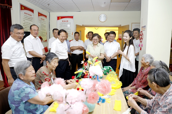 在參觀孝潤養老服務中心、保利海德佳園·善園社區養老服務用房現場,聽取了相關情況的介紹,察看了各功能分區情況。