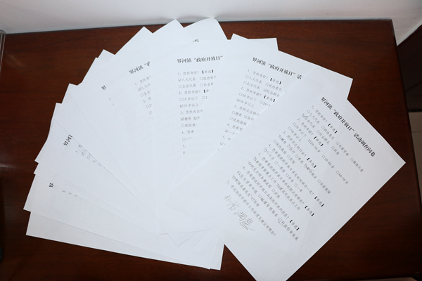 活動(dòng)結(jié)束后,受邀代表們參加了政府開放日座談會(huì)。會(huì)上,便民服務(wù)中心主任楊鳴介紹了全鎮(zhèn)重點(diǎn)工作開展情況,解答了大家提出的各項(xiàng)疑問(wèn)和群眾關(guān)心的熱點(diǎn)問(wèn)題。會(huì)后,通過(guò)發(fā)放“政府開放日”活動(dòng)調(diào)查問(wèn)卷,收集了各位代表意見及建議。?