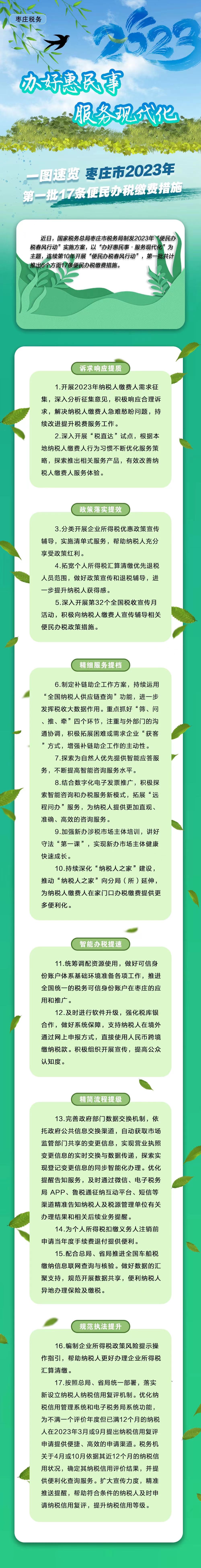 一圖速覽:棗莊市2023年第一批17條便民辦稅繳費措施