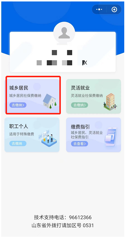 第二步,選擇首頁“城鄉居民”,點擊進入“居民醫療”繳費模塊。