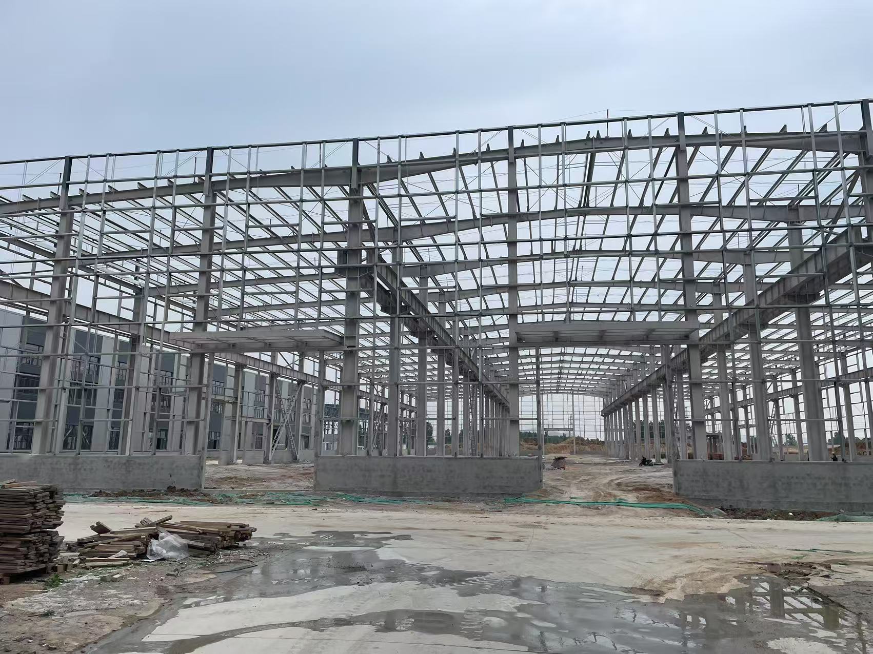 B2、B3廠房外墻保溫砂漿完成;B5、B6廠房外墻外墻漆完成60%,屋面施工完成;C3廠房墻面拉條安裝、檁條焊接,外圍護墻完成;D3廠房地面整平壓實完成,設(shè)備基礎(chǔ)施工完成;P1外墻二次結(jié)構(gòu)完成,內(nèi)墻抹灰施工;P2消防水池外墻鋼筋綁扎,消防泵房套管安裝。